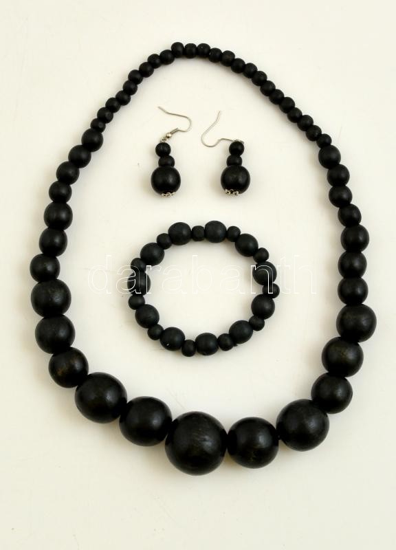 Leírás: Dekoratív fekete fa gyöngysor karkötővel, fülbevalóval