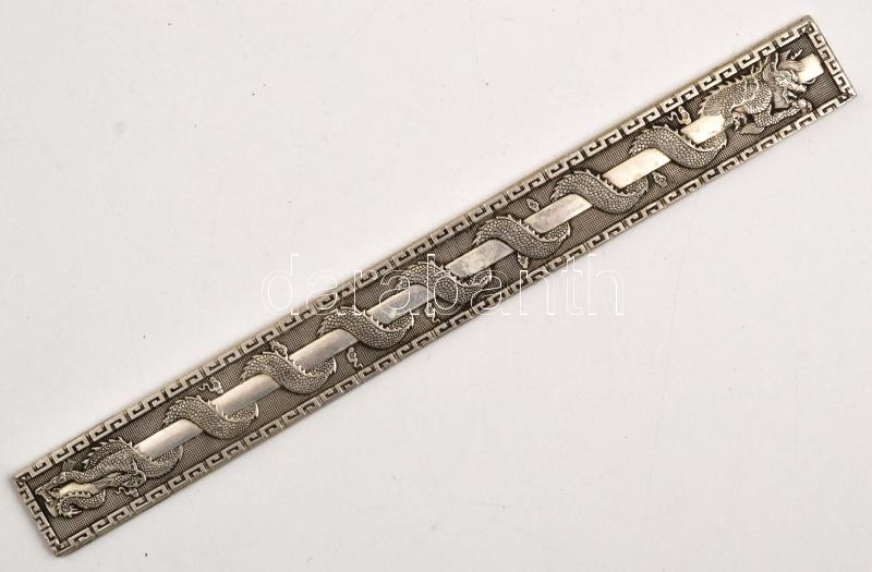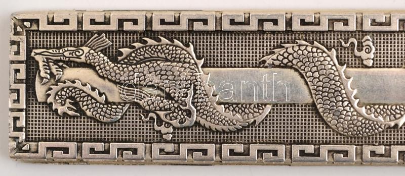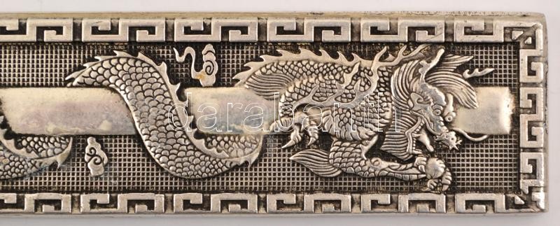 Leírás: Tibeti ezüst "Zheng zhi" (Ag. 50% alatti ezüst tartalommal) sárkányos fali dísz, 22×2,5 cm