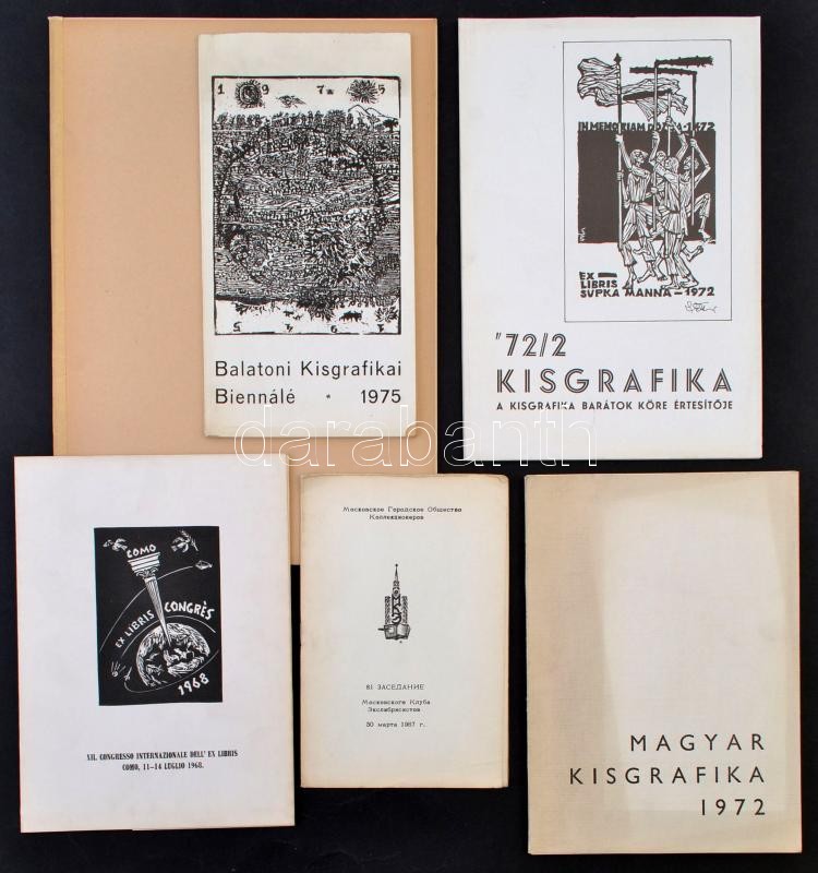 Leírás: Vegyes ex libris szakirodalom tétel: katalógusok, értesítő, mappa, meghívó; magyar, dán, orosz és olasz nyelven, összesen 6 db