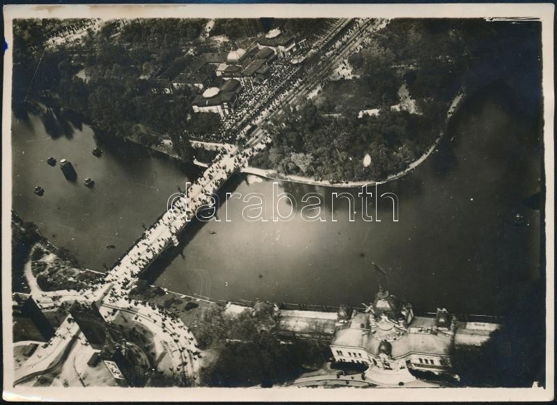 Leírás: 1919. május 1. Budapest, Városliget, légi felvétel, rajta a ma már nem látható Fővárosi Pavilonnal, 13x18 cm