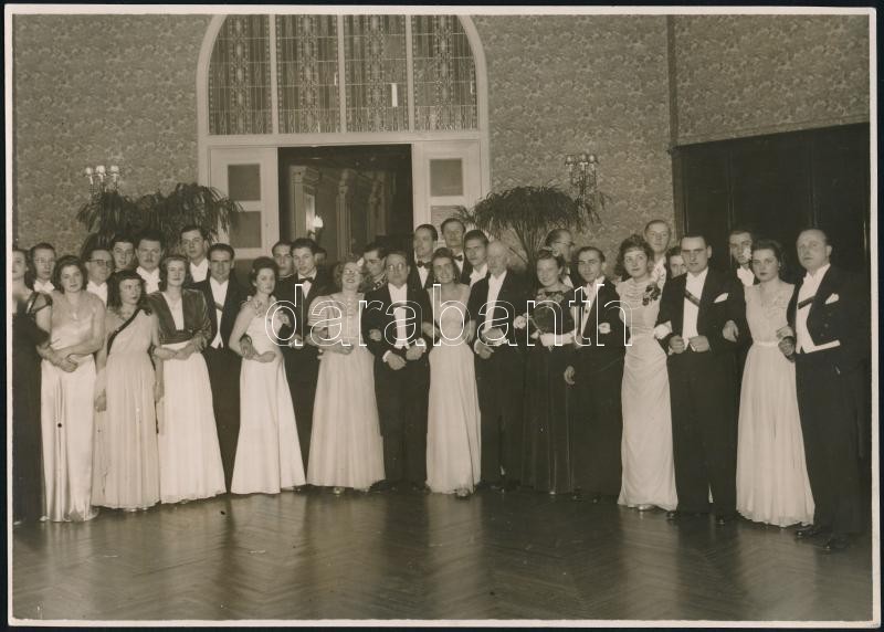 Leírás: 1942 Bálozók, pecséttel jelzett fotó fotó nemes Jakab Sándor műterméből, 16x23 cm