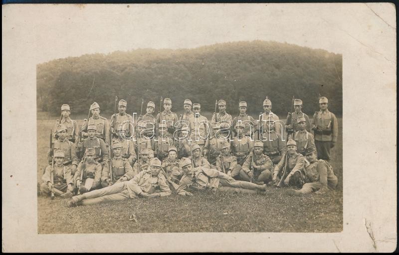Leírás: 1915 A brassói tartalékos tiszti iskola I. szakasza, fotólap, hátoldalon feliratozva, 14x9 cm