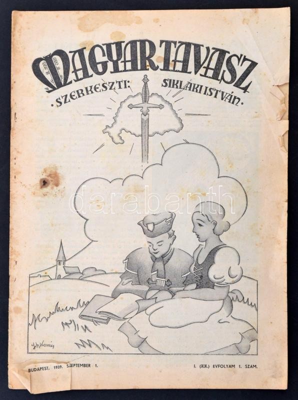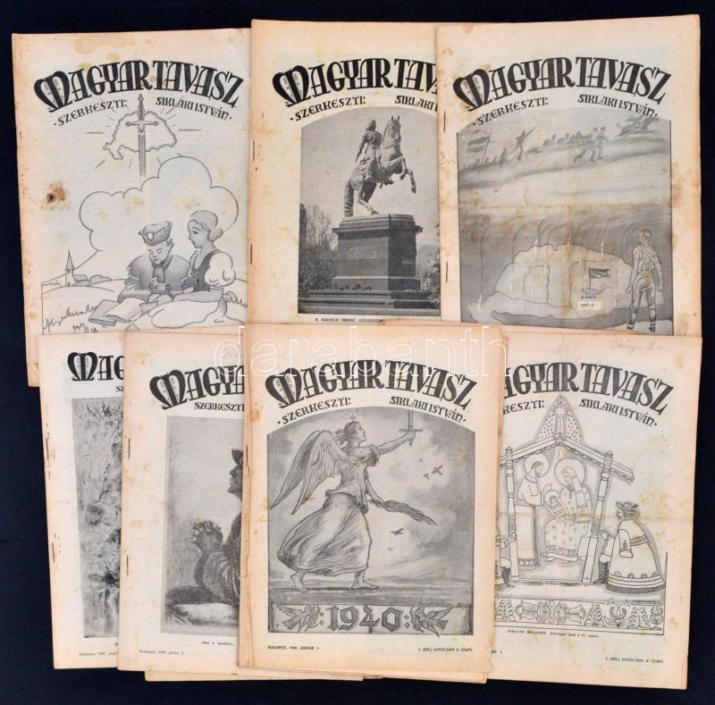 1939-1940 Magyar Tavasz c. irredenta folyóirat teljes évfolyama. Szerk.: Siklaki István. I. (XIX.) évf. 1-12. szám. Papírkötés, foltos lapokkal, kisebb szakadásokkal.