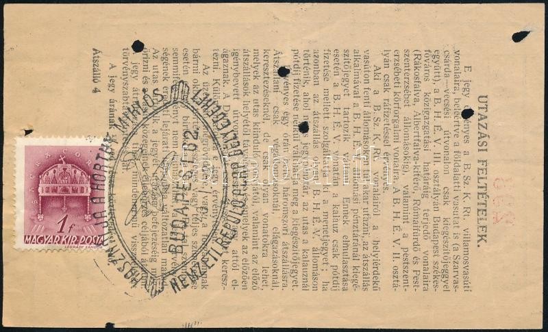 Leírás: 1942 Bp., BSZKRT átszállójegy, bélyeggel, reklámbélyegzéssel