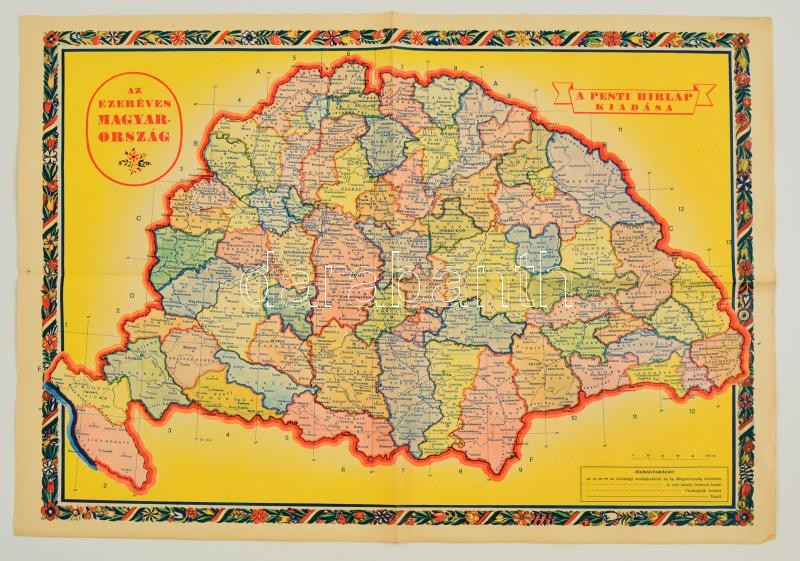 1938 Pesti Hírlap színes térképmelléklete: "Az ezeréves Magyarország",... https://www.darabanth.com/hu/301-Gyorsarveres/301.0/Festmeny-mutargy-papirregiseg-egyeb/Terkepek~28/1938-Pesti-Hirlap-szines-terkepmelleklete-Az-ezereves-Magyarorszag-ill-hatoldalan-Eur~II1612740