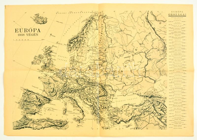 Leírás: 1938 Pesti Hírlap színes térképmelléklete: "Az ezeréves Magyarország", ill. hátoldalán "Európa 1938 végén", 41x57 cm. Jó állapotban