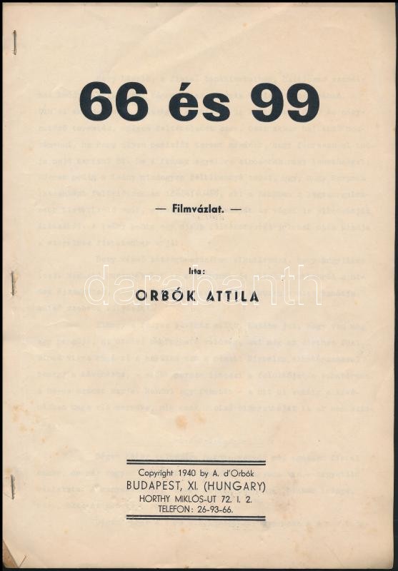 1940 Orbók Attila "66 és 99" című filmének filmvázlata, tűzött gépirat... https://www.darabanth.com/hu/301-Gyorsarveres/301.0/Festmeny-mutargy-papirregiseg-egyeb/Tortenelmi-dokumentumok-keziratok-erdekessegek~18/1940-Orbok-Attila-66-es-99-cimu-filmenek-filmvazlata-tuzott-gepirat-12-p~II1613713