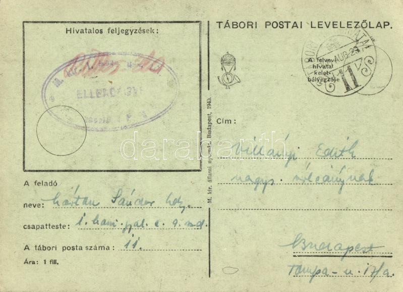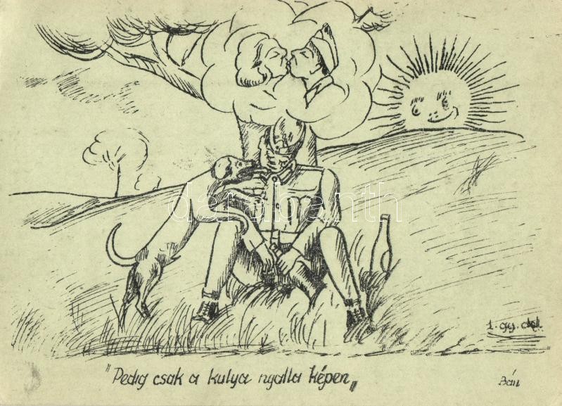 Leírás: 1940 Pedig csak a kutya nyalta képen. I. honvéd gyalogezred 9. század Tábori Postai Levelezőlap / WWII Hungarian field postcard s: Bán