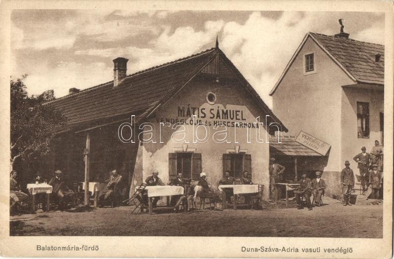 Balatonmária-fürdő, Mátis Sámuel Duna-Száva-Adria vasúti vendéglője és... https://www.darabanth.com/hu/301-Gyorsarveres/301.0/Kepeslapok/Magyarorszag~100004/Balatonmaria-furdo-Matis-Samuel-Duna-Szava-Adria-vasuti-vendegloje-es-huscsarnoka-Gyene~II1617748