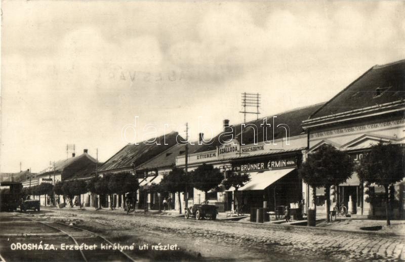 Orosháza, Erzsébet királyné út, Brünner Ármin üzlete, Holler szálloda,... https://www.darabanth.com/hu/301-Gyorsarveres/301.0/Kepeslapok/Magyarorszag~100004/Oroshaza-Erzsebet-kiralyne-ut-Brunner-Armin-uzlete-Holler-szalloda-etterem-es-sorcsa~II1617968