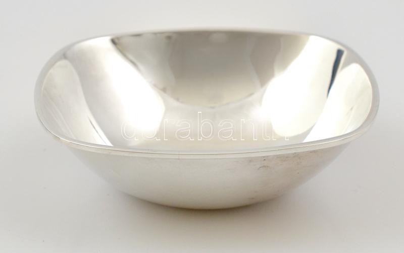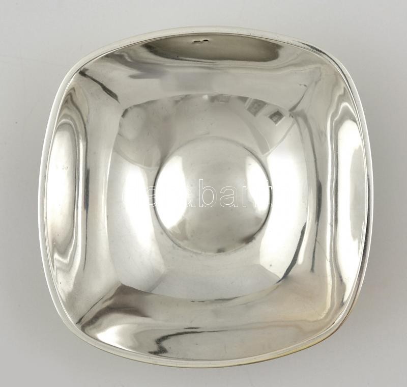 Leírás: Ezüst(Ag) ívelt négyszögletes tálka, jelzett, 10,5x10,5 cm, nettó: 80,7 g