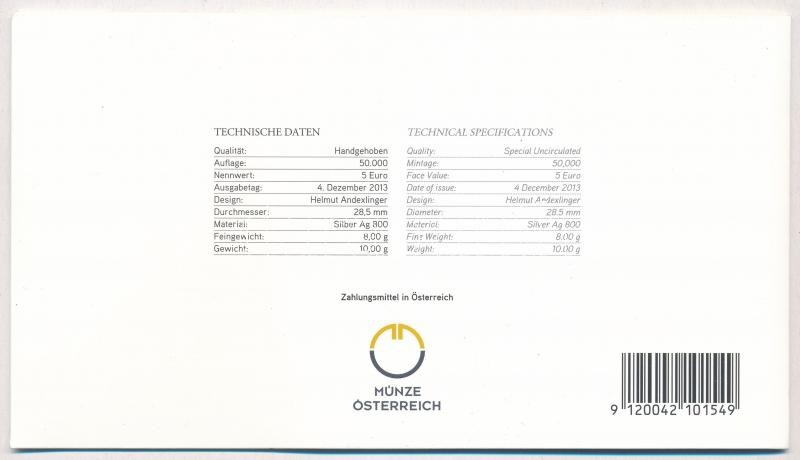 Leírás: Ausztria 2013. 5E Ag "Újév" karton dísztokban, tanúsítvánnyal T:PP