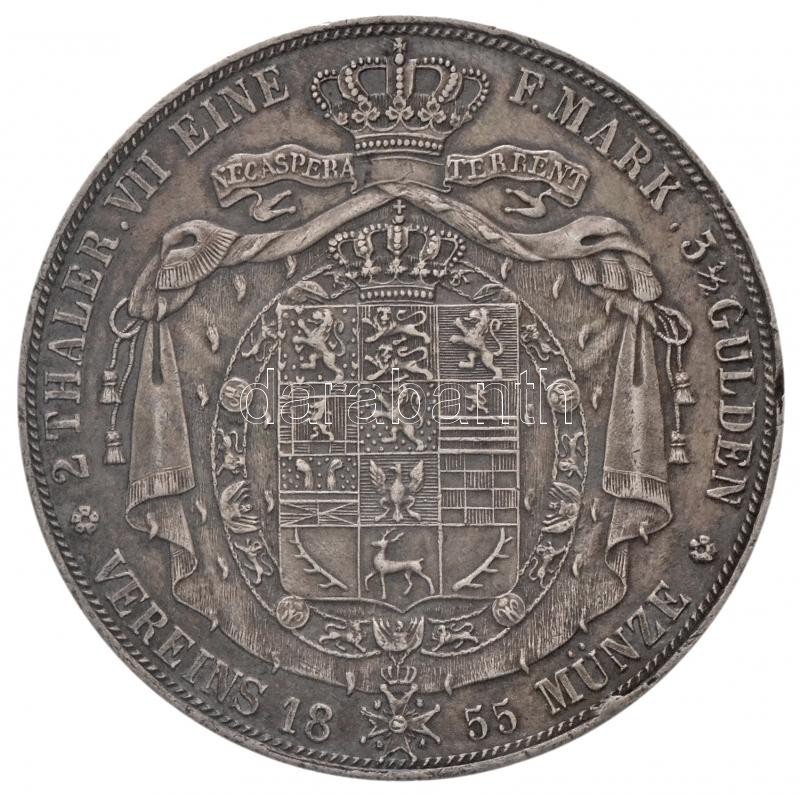 Német Államok / Braunschweig-Lüneburg 1855B 2 Tallér Ag "Vilmos" (37,20g) T:2 ph., patina / German States / Brunswick-Lüneburg 1855B 2 Thaler Ag "Wilhelm" (37,20g) C:XF edge error, patina