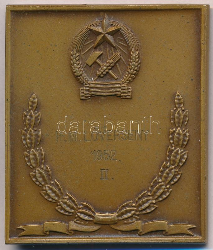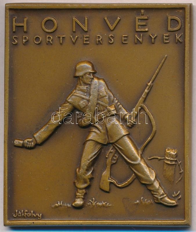 Leírás: 1952. "Honvéd Sportversenyek" fém plakett, hátlapján gravírozás. Szign.:Jákfalvy (60,5x52mm) T:2