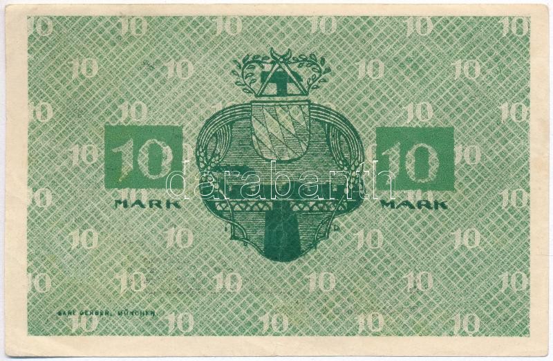 German Empire / Bavaria / München 1918. 10 Mark necessity note on watermarked paper C:XF