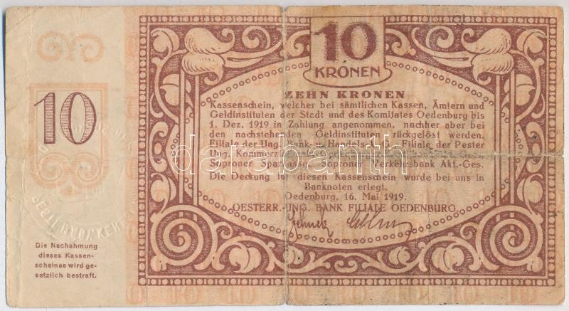 Hungary / Sopron 1919. 10 Korona " with "Pesti Magyar Kereskedelmi Bank" embossed stamp T:III tear