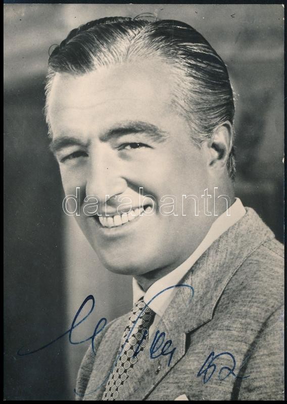 Vittorio De Sica (1901-1974) olasz színész, filmrendező aláírt fotólapja, 14,5x10,5 cm / Autograph signature of Vittorio De Sica Italian actor, director, 14,5x10,5 cm