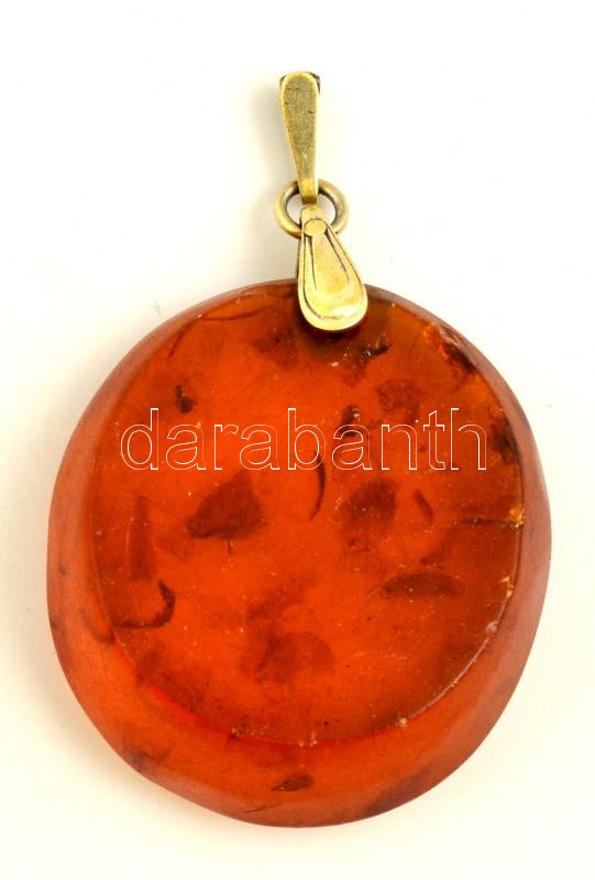 Leírás: Borostyán medál, kis sérüléssel, d: 4 cm