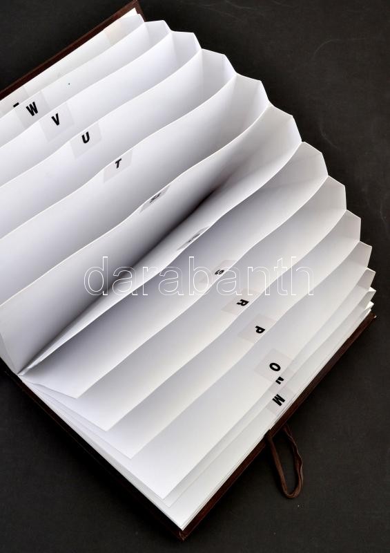 Leírás: Műbőr előrendező mappa, az egyik szélén kis kopással, de egyébként jó állapotban.