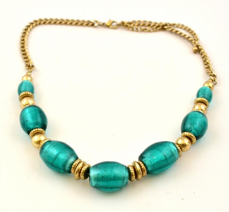 Leírás: Üveggyöngyökkel díszített bizsu nyaklánc, jó állapotban
