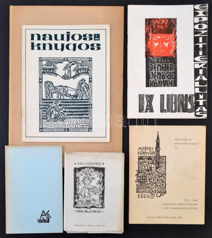 Leírás: Vegyes ex libris szakirodalom tétel: katalógusok, mappák, stb.; magyar, dán, litván és orosz nyelven, összesen 6 db