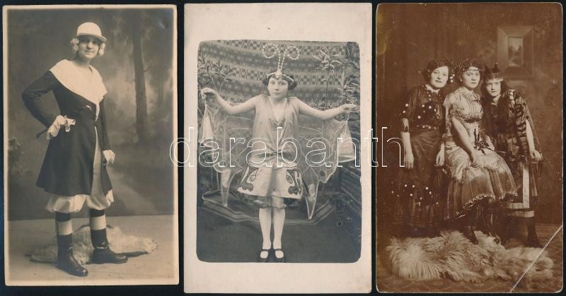 Leírás: cca 1900-1920 Jelmezes műtermi porté, 3 db, 14x9 cm