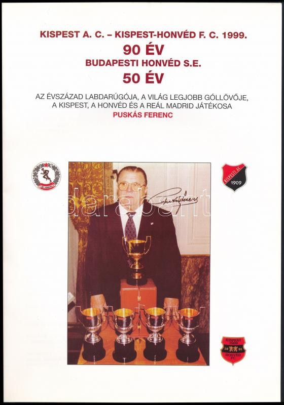 Leírás: 1999 Kispest A. C. 90 éves megalakulásának emlékfüzete, kiadja a Kispest-Honvéd Baráti Kör Egyesület, 39 p.