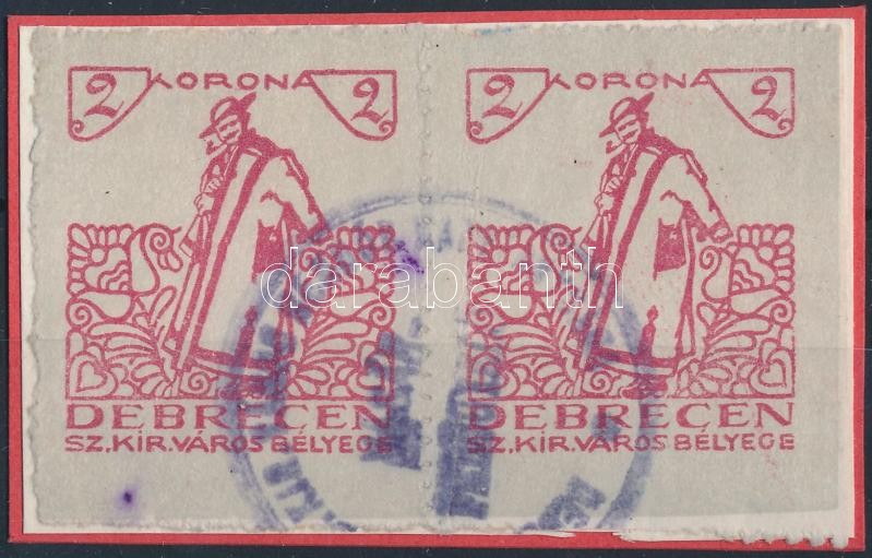 Leírás: 1919 Debrecen SZ.KIR.V. 1 sz. okirati illetékbélyegpár (7.000)