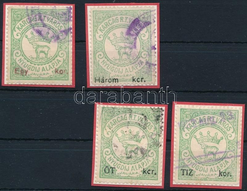 Leírás: 1921 Karcag R.T.V. 4 féle okirati illetékbélyeg (7.100)