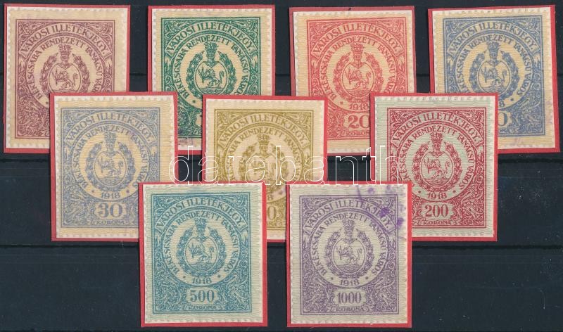 Leírás: 1923 Békéscsaba városi illetékbélyeg 9 db 8 féle példánya (9.600)