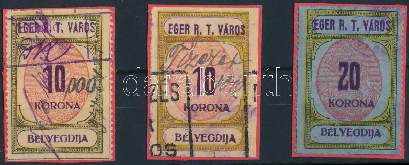 Leírás: 1923 Eger R.T.V. 3 db 2 féle okirati illetékbélyeg (5.250)