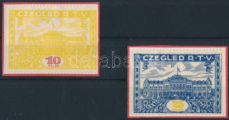 Leírás: 1925 Cegléd R.T.V. 1 sz. ( 'L' és 'É' között vessző) és 2 sz. illetékbélyeg (7.000)
