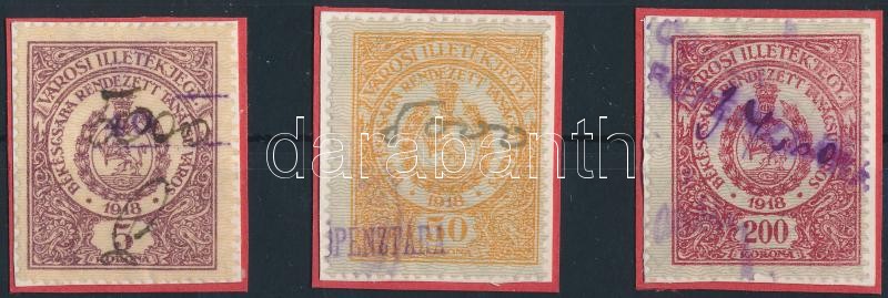 Leírás: 1926 Békéscsaba városi illetékbélyeg 3 klf felülbélyegzett példánya (6.500)