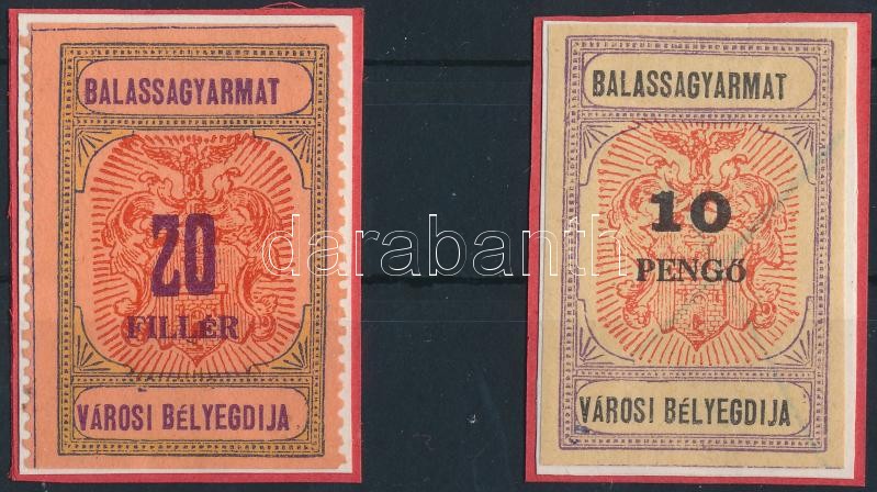 Leírás: 1933-1945 Balassagyarmat városi bélyegdíj 13 és 23 sz. 84 oldalon fogazatlan) okmánybélyege (10.800)