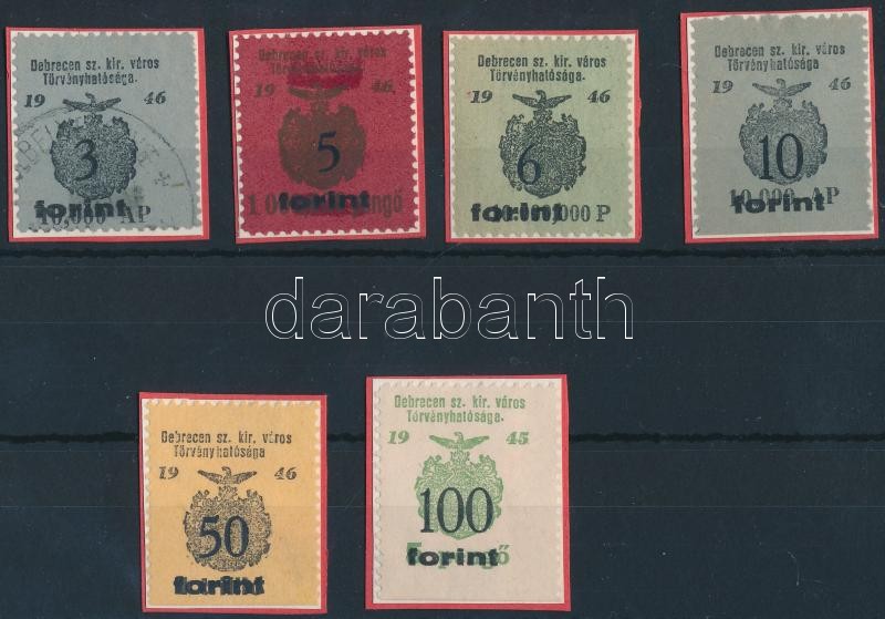 Leírás: 1946 Debrecen 6 klf okirati illetékbélyeg (24.200)