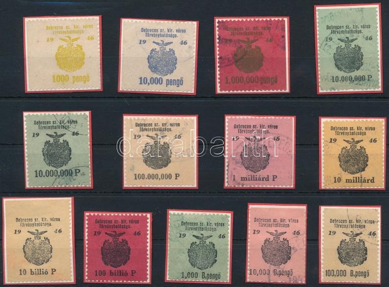 1946 Debrecen SZ.KIR.V. 13 féle okirati illetékbélyeg,