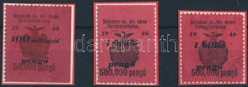 Leírás: 1946 Debrecen SZ.KIR.V. 3 db 58 és 59 sz. okirati illetékbélyeg(9.500)