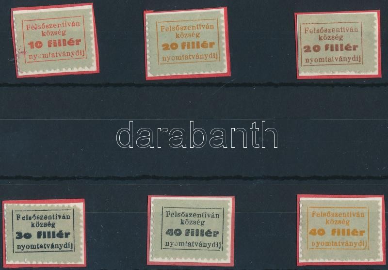 Leírás: 1946 Felsőszentiván község 6 db 4 féle okirati illetékbélyege (19.250)