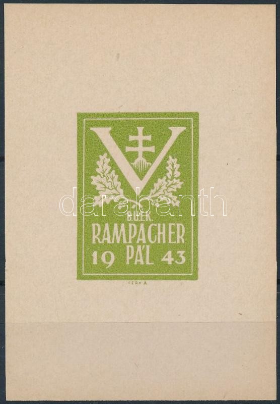 1943 Rampacher Pál vágott levélzáró https://www.darabanth.com/hu/302-Gyorsarveres/302.0/Festmeny-mutargy-papirregiseg-egyeb/Parafilatelia~15/1943-Rampacher-Pal-vagott-levelzaro~II1625077