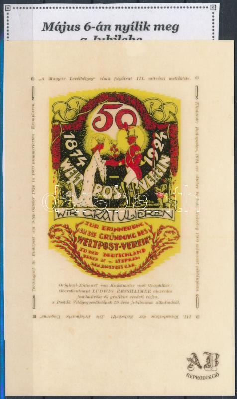 Posták világtalálkozója reprodukció, Hesshaimer Jubilehe https://www.darabanth.com/hu/302-Gyorsarveres/302.0/Festmeny-mutargy-papirregiseg-egyeb/Parafilatelia~15/Postak-vilagtalalkozoja-reprodukcio-Hesshaimer-Jubilehe~II1625238