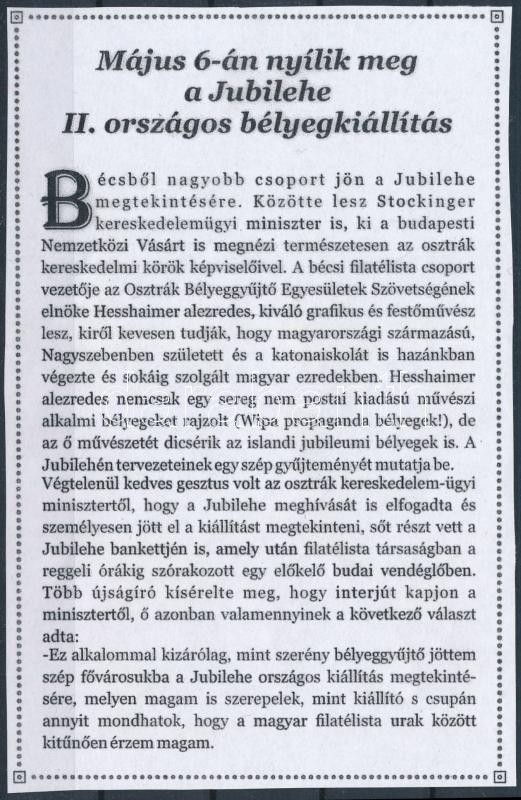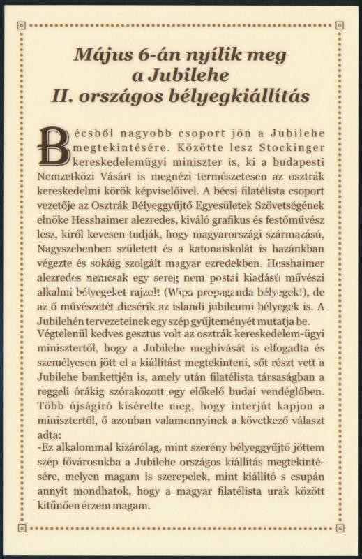 Leírás: Posták világtalálkozója reprodukció, Hesshaimer Jubilehe