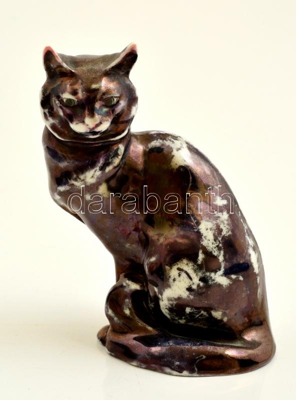 Leírás: Drasche macska, kézzel festett, jelzett, kopott, m: 14,5 cm