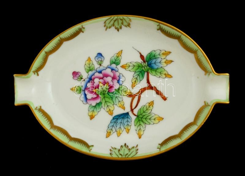 Leírás: Herendi Viktória mintás hamutálka, kézzel festett, jelzett, kis lepattanással, 11,5×7,5 cm