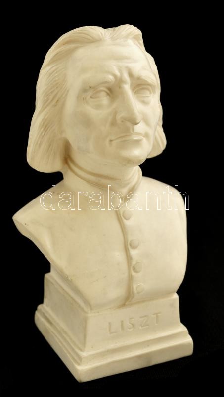 Leírás: G R. jelzéssel: Liszt Ferenc zeneszerző alabástrom büsztje. 15 cm