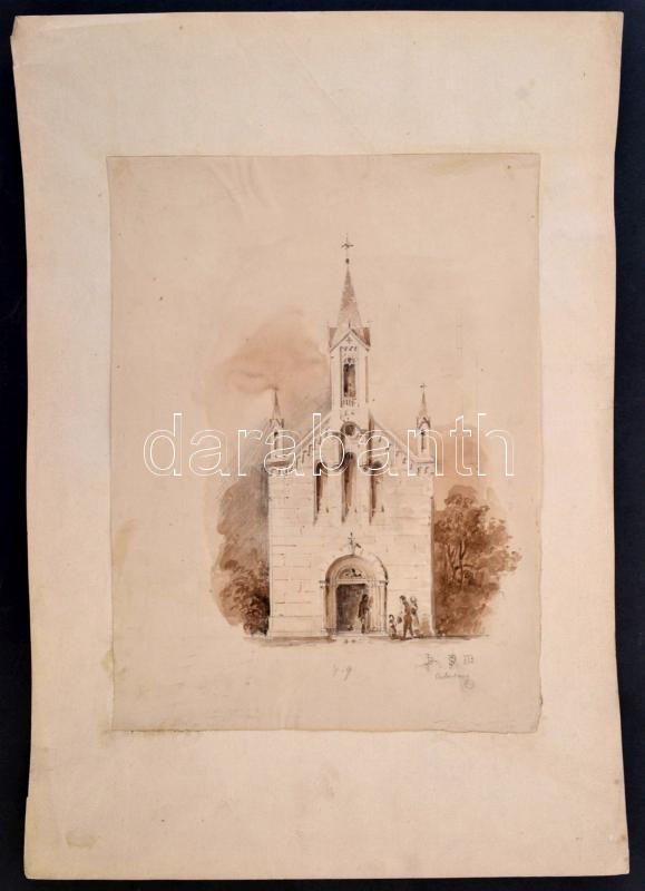 Leírás: 1852 Sopron. Meg nem épült, (vagy lebontott) kápolna akavarellel készült, jelzett terve / 1852 Oedenburg water-color of a chapel. Signed. 22x28 cm