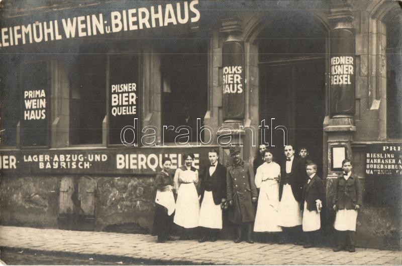 Leírás: Vienna, Wien; Wein und Bierhaus, Lager Abzug und Bayrisch Bierquelle / beer hall, waiters and waitresses. photo (EK)