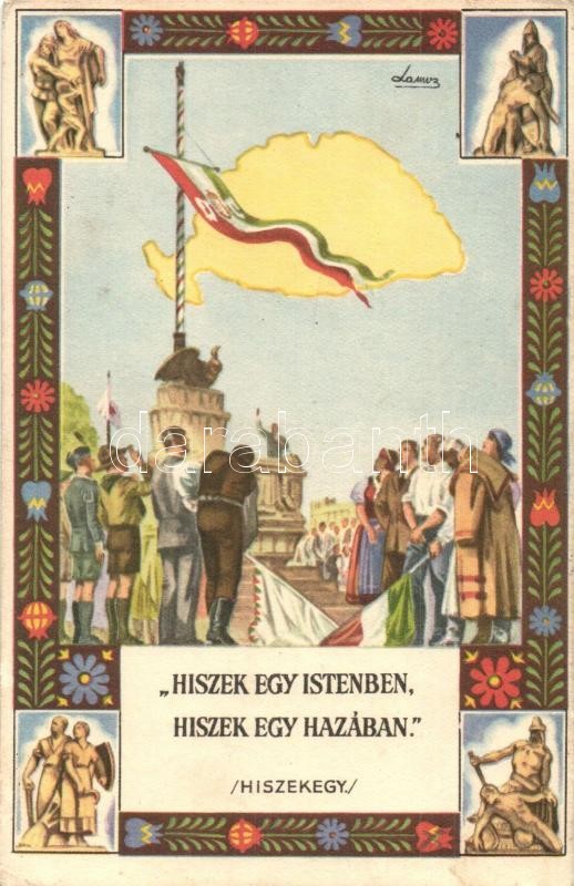 Leírás: Hiszekegy; kiadja a Ereklyés Országzászló Nagybizottsága. Irredenta s: Lamoss - 7 db régi képeslap / 7 pre-1945 postcards