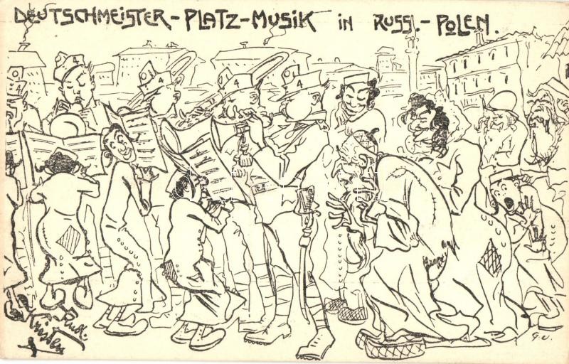 Deutschmeister-Platz-Musik in Russ. Polen / anti-semitic military humo... https://www.darabanth.com/hu/302-Gyorsarveres/302.0/Kepeslapok/Katonai~300084/Deutschmeister-Platz-Musik-in-Russ-Polen-anti-semitic-military-humour-music-band-Judaica-s-Rud~II1624424