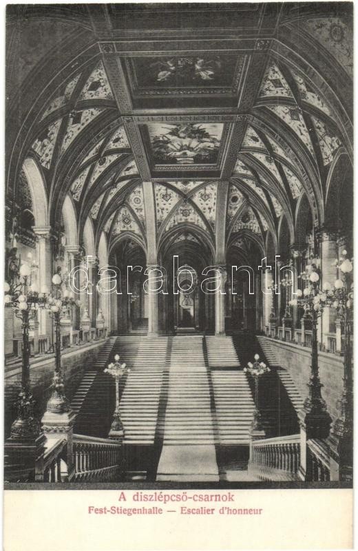 Budapest V. Országház, A díszlépcső csarnok, belső (vágott / cut) https://www.darabanth.com/hu/302-Gyorsarveres/302.0/Kepeslapok/Magyarorszag~300006/Budapest-V-Orszaghaz-A-diszlepcso-csarnok-belso-vagott-cut~II1625422