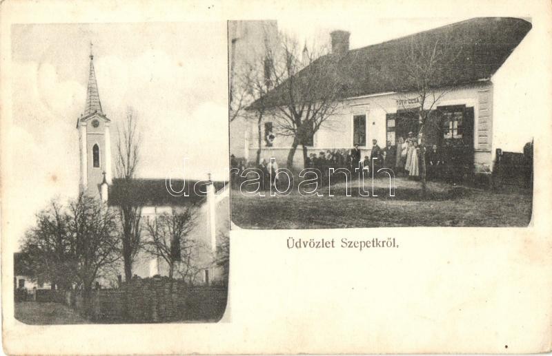 Leírás: Szepetk (Pókaszepetk), Római katolikus templom, Tóth Géza üzlete (EK)